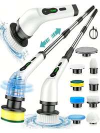 Cepillo eléctrico giratorio, cepillo de limpieza inalámbrico, cepillo de ducha con 9 o 6 cabezales, potencia de 2 horas, doble velocidad, mango extensible ajustable, cepillo de limpieza inalámbrico de 360° para baño, bañera, azulejos, cable de carga USB-C, cepillo de limpieza giratorio, regalos de Acción de Gracias, Navidad y Halloween.#3 Más vendidos