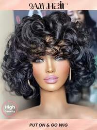 in Curly Wave Human Affordable Wear & Go Wigs