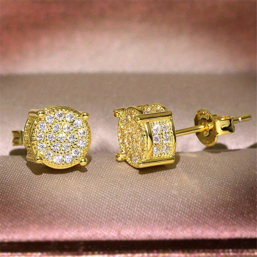 Ice Crystal Earrings, Gemstone Earrings, Hip-Hop Earrings (Gold/Silver), Circular Design With Micro Inlay And Colored Coating, Suitable For Dates, Festivals, Parties, Wedding Gifts