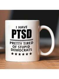 1pc 11oz Ceramic Coffee Mug With "Pretty Tired Of Stupid " Quote, Double-Sided Novelty, Insulated, Reusable, Machine Washable, Multipurpose, Ideal For Birthday, Christmas, New Year, Holiday, Halloween Gifts