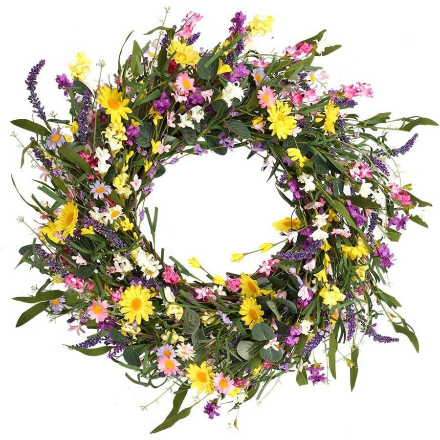 J'FLORU Spring Wreath 24 Inch Summer Wreaths For Front Door Artificial Flower Wreath With Daisy And Lavender For Indoor Outdoor And Easter CelebrationMother's Day Easter