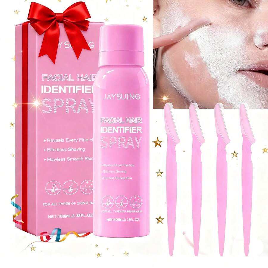 JAYSUING 1pc 100ml Hair Identification Spray, New Upgrade, Suitable For Shaving, Skin Care, Makeup And Hair Removal For Men And Women - Facial Hair Identification Spray With Razor (1 Bottle + 4 Razors) [Care] [Travel Size] [Hair Removal Set] [Halloween] [Christmas]