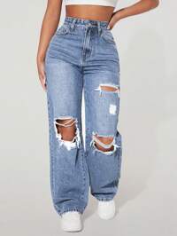 Solid Color Wash Blue High-Waisted Jeans, Loose Diagonal Pocket Zipper Button Open And Close Jeans, Women's Jeans And Clothing,Pantalón Jean Mujer,Women Clothes,Jeans Para Mujer,Pantalones De Mujer Jean,Ropa De Mujer,Tall Jeans Women,Y2k Clothes,Going Out Outfits,Holiday Outfits For Women,Vacation Outfits Women,Club Outfits For Women,New Years Outfit Women,Holiday Outfits For Women