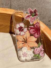 Faux Pearl Floral Painted Elegant New Feather Chiffon Minimalist Fashion Phone Case Compatible With IPhone 17/17 Pro Max, 15, 16/16 Pro, 15 Pro Max, P13, P14, P11 Soft Case, P12, XS, XR, 7/8, 7/8 Plus, A14, A15, S23 Ultra, A50, A12, A32, A52, A72, A51, A21S, A13, A14, S22 Ultra, S23, A33, A53, S20 FE,International Version, Not The Domestic Version