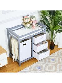 ShiningLove Baby Changing Table, Baby Changing Table Dresser With Laundry Basket, 3 Drawer Baskets And Changing Pad