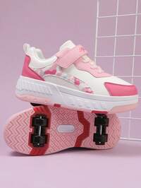Charging LED 7-Color Light Up Wheeled Skate Shoes, USB Dual Roller Skating Sneakers, Rotary Button, Leather, For Children, Girls, Boys, Street Dance, Spring Summer Autumn, Fashion, Student, Couple Shoes, Retractable Wheels, Casual Sneakers Upgraded Fashion Children & Teens Roller Skate Shoes, Enhanced Stability, Detachable 2-In-1 Sneakers, Street Cool Skating Shoes, Outdoor Sports Luminous Shoes, Parent-Child Shoes, New Roller Skates, Luminous Shoelaces, Roller Skates With LED Lights, USB Rechargeable Roller Skate Shoes, LED Luminous Roller Skate Shoes, Sports Shoes With Luminous Soles, Boys