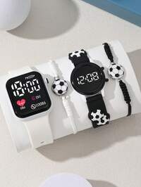 Set de 6/1 pieza Reloj electrónico digital con forma de corazón, correa de silicona, incluye pulsera, collar, anillo, aretes, adecuado para regalos, escuela, ceremonias de graduación, estudiantes, regreso a clases, fiestas, viajes, cumpleaños, graduación y regalo perfecto para niñas
