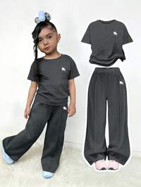 2pcs/Set Tween Girls' Casual Minimalist Blue, Mini Bow Pattern, Contrast Cream Pink Stripe Short Sleeve Round Neck T-Shirt And Shorts Set, Suitable For Summer, Autumn Outfits Easy Comfort, Autumn Layers For Kids, Stylish Girls, Casual Wear, Kids Graphic Clothes, Back To School, Fall Clothes, Homecoming Zoey Outfit Cute Set Kawaii Outfit E Girl Clothes Girl Clothes #1 Bestseller