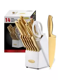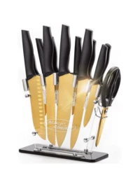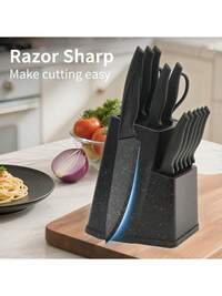 Juego de 13 cuchillos especiales de chef, juego de cuchillos de cocina, portacuchillos con afilador, cuchillo de pan, cuchillo de chef, etc., juego de cuchillos negros de acero al carbono japonés, diseño de mango profesional, ligero de usar, fácil y cómodo de sostener durante mucho tiempo, adecuado para cocina, patio, regalos navideños, Halloween, regalos de Navidad#4 Más vendidos