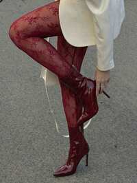 SHEIN SXYSHEIN SXY Burgundy Sexy Lace Leggings,Carnival,Party,Rave Outfit ,Summer, Spring,Valentine's Day,Going Out,Red,Mesh ,Sheer,Red #5 Bestseller