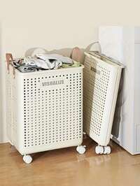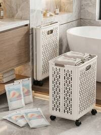 Large Wheeled Foldable Laundry Basket, Ceramic White, Milky Yellow, Multi-Functional Storage Container, Houndstooth Pattern Storage Bag, Dirty Clothes Hamper, Fragrance Sachet, Absorbent Paper, Suitable For Storing Clothes And Miscellaneous Items, Especially Suitable For Bathroom, Balcony And Home Organization. #7 Bestseller