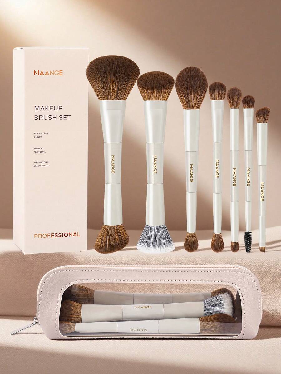MAANGE 5/7/8/10pcs Soft Dual-Ended Multi-Functional Makeup Brush Set, Including Face Brush, Powder Brush, Blush Brush, Concealer Brush, Contour Brush, Nose Brush, Eyeshadow Brush, Detail Brush, Foundation Brush, Highlighter Brush. Made Of High-Quality Synthetic Hair, Durable For Daily Facial Makeup, Suitable For Liquid, Cream And Powder Products. Can Be Used For Stippling, Blending And Facial Cleansing.