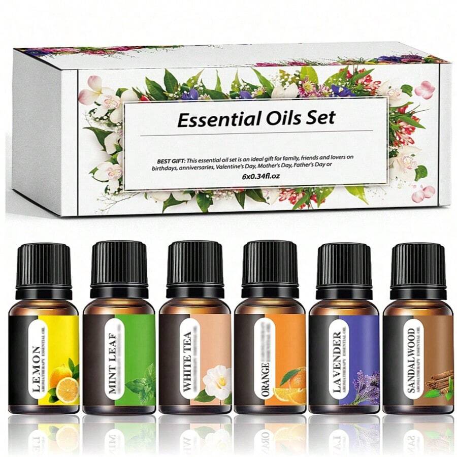 MEJISOO 12PCS * 0.34OZ Essential Oil Set Includes White Tea, Rose, Lily, Ocean, Mint, Sweet Orange, Lilac, Jasmine, Vanilla, Lavender, Sandalwood, And Cherry Blossom (6 * 0.34OZ). Roses, Blackice, Lavender, Lemon, Sandalwood, And Cherry Blossom Are Suitable For Home Humidifiers And Aromatherapy Essential Oil Diffusers
