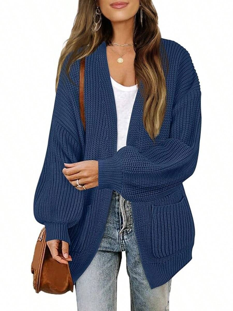 MEROKEETY Women's 2025 Open Front Chunky Cardigans Lantern Long Sleeve Oversized Knit Outwear With Pocket