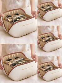 Large Capacity Double-Layer PU Leather Waterproof Cosmetic Bag, Multi-Functional Travel Organizer Bag, Makeup Organizer, Skincare Pouch, Toiletry Bag, Travel Home Makeup Organizer, Portable Beauty Storage Case, Vanity Essentials Container, Compact Cosmetic Pouch, Durable Handbag Accessory, Perfect Gift For Women, Girls, Professional Makeup Artists Local