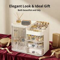 Makeup Organizer With Brush Holder, Drawers, Countertop Storage Organizer, Makeup Organizer Cosmetic Storage For Vanity, Makeup Brushes Storage, Skin Care Storage, Perfect Storage For Lipsticks, Eyeshadow, Nail Polishes, Perfumes, Bathroom & Bedroom Storage Summer Travel, Vacation Home Bathroom Decor Holiday Makeup Organizer, Valentines Gift