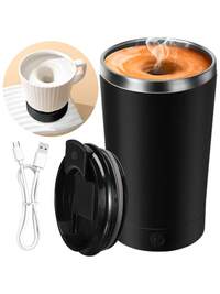 Taza mezcladora eléctrica, taza autorrevatoria, taza de café con tapa, taza de viaje magnética autorrevatoria portátil utilizada para mezclar café, chocolate, leche, proteína en polvo, etc., muy adecuada para oficina, escuela, gimnasio, hogar, viajes, suministros para fiestas de Navidad, regalos de Año Nuevo, San Valentín, regalos de cumpleaños (albaricoque)