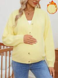 SHEIN MaternityMaternity Knitted Cardigan Outer Jacket, Wear Over Maternity Dress, For Spring, Autumn, Summer Air-Conditioned Room, Solid Color Tied Long Sleeve Open Front Sweater, Minimalist, Office Wear, Retro, Simple, French Style, Women Front Waist Tie Solid Color Knit Cardigan, Can Wear Over Blouse, Extra Large Cute Cardigan Casual