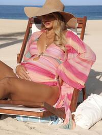 SHEIN MaternitySHEIN 2026 New Women's Swimwear Arrival Pregnant Women's Tie-Dye Halter Criss-Cross Metal Decor One-Piece Swimsuit With Long Sleeve Cover Up Cover-Up For School,Suitable For Holiday, Date, Afternoon Tea, Western, Cruise, Beach, Island, Road Trip, All Seasons, Music Festival, Boho Vacation,Bohemian Vacation, Chill Autumn ,Western Boho ,Elegant Tops For Women Maternity Cover Up Maternity Swimwear Maternity Beach Maternity Vacation Outfit Maternity Sets Summer Beach Cover Up Set Pink Cover Up Bathing Suits With Coverup Sexy Coverups Swimwear