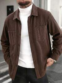 Plus Size Men's Corduroy Jacket Shirt, Fashionable Corduroy Fabric Men's Casual Shirt Jacket, Lapel Collar, Button Front, Long Sleeve, Dual Pockets Design, Suitable For Daily Casual, Fashion, Minimalist, Commuting, Street Style, Spring And Autumn Wear, Great Gift For Men! #5 Bestseller