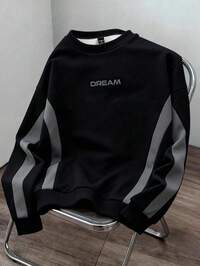 PAVTROS Manfinity Streetrush 1pc Men's Sweatshirt, Minimalist Graphic Chest Patch, Crew Neck Pullover, Sporty Casual Everyday Wear, Commute, Vacation, Back To School, Gift For Boyfriend/Husband, Unisex, Emo Style, 2000s Style , Fall, Long Sleeve Top