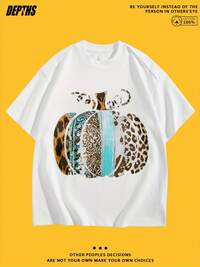 Camiseta de algodón de 200g con estampado de patrón de letra popular, arquitectura de calabaza, moda retro, ocio de Halloween, rosas florales de esqueleto de mamá, de alta calidad, suelta, suave y cómoda, para hombre, de verano, de marca de moda retro