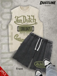 Conjunto de 2 piezas de estilo Y2K para hombre, con chaleco sin mangas y pantalones cortos, estilo unisex con estampado Von-Dutchs, conjunto a juego para parejas, ideal para el Día de San Valentín, looks románticos, estilo callejero, Día de San Patricio, Pascua, Carnaval, vuelta al cole, regalo, estampado de astronauta Godspeed en la parte superior sin mangas y el conjunto de pantalones cortos con diseño gráfico vintage, para un look casual de ropa de calle, ropa de verano para hombre, estilo de pareja#4 Más vendidos