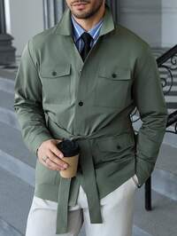 1pc Men's Lapel Windbreaker Cardigan Jacket, Single-Breasted Overcoat - Mature Men's Style, Spring/Autumn/Winter, Knee-Length Slim Fit Trench Coat, Regular Sleeve Length, No Belt, Traditional Silhouette, Button Closure, Suitable For Business Commute, Casual Street, Men's Gift Choice #5 Bestseller