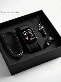 Global Fashion Stand4/1pc Men's Fashionable And Simple LED Heart-Shaped Digital Display Electronic Watch, Suitable For Men To Wear, Equipped With Fashionable Bracelets, Necklaces, Ring Sets, Very Suitable For Daily Life Such As School, Men's Gatherings, And Travel. Birthday Gift, Graduation Season, Christmas, Perfect Gift For Men