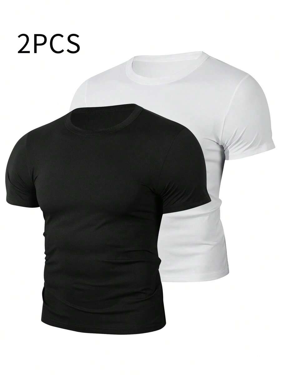 Men's 2-Piece Sports T-Shirt, Men's Functional Shirt, Quick-Drying Breathable Training Shirt, Fitness Running Shirt, Summer Casual Comfort Shirt