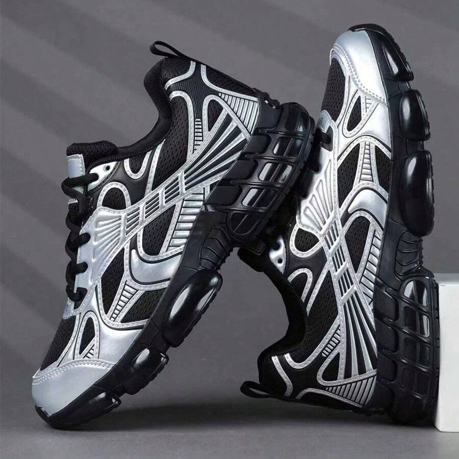 Men's Solid Color Black Casual Sneakers - Versatile, Non-Slip Fashion Comfort Shoes With Lace-Up Closure, PU Upper & PVC Sole For Casual Attire And Running