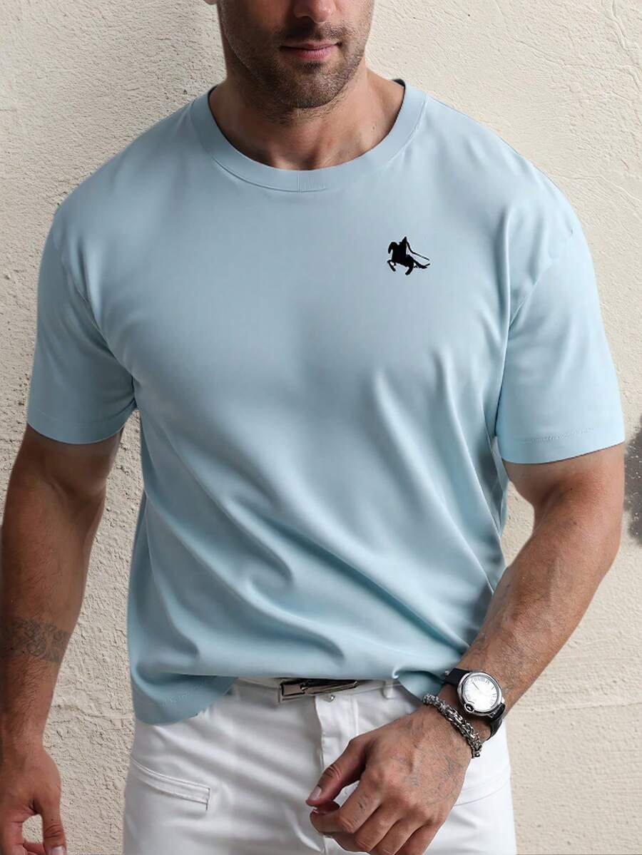 Men's Summer Knight Print Round Neck Casual Short Sleeve T-Shirt, Paired With Casual Pants, Suitable For Travel/Vacation/Outdoor Camping/Sports,Paired With Casual Pants