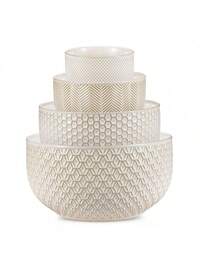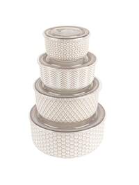 Ceramic Nesting Bowls, With Lids, Serving, Set Of 4, Embossed, Kitchen, Prep, Mix, Gift, Microwave And Dishwasher Safe, 10/16/29/47 Oz, Narbonne Collection (Ivory)#4 Bestseller