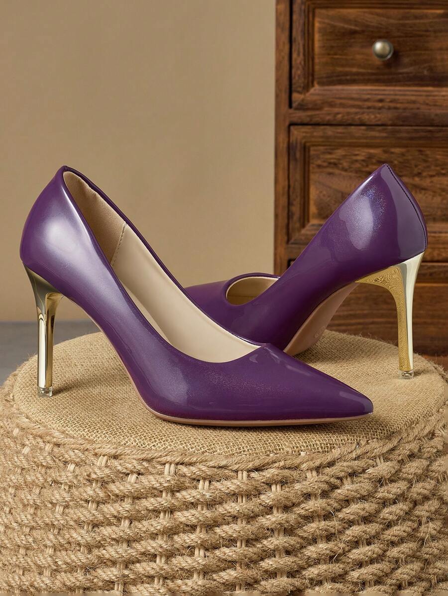 MonaNise Women's Fashion Pointed Toe Low Vamp Pumps In Pink, Purple, Gold, Silver, Navy Blue, Black & Brown, 9cm Thin Heel, Comfortable, Suitable For Shopping, Vacation, Travel, Outdoor