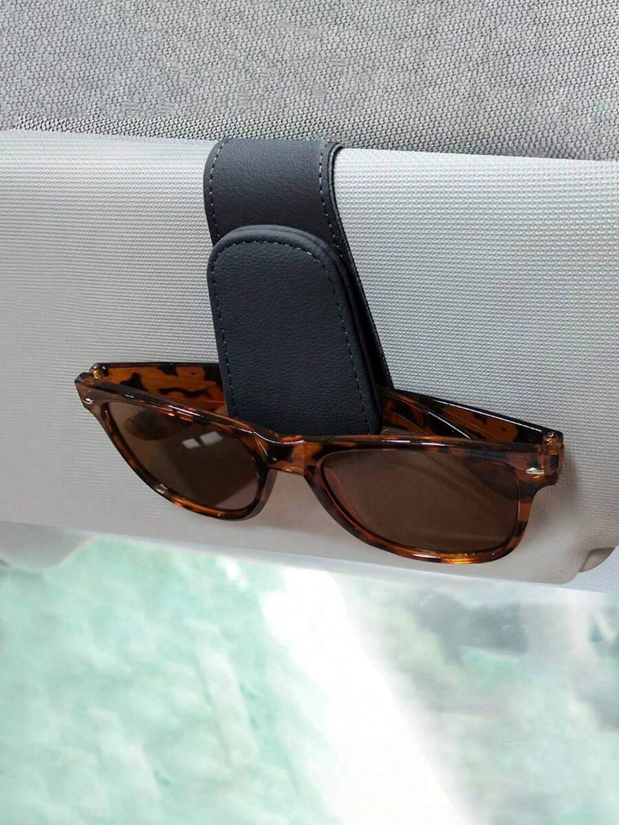 Multi Function Car Sunglasses Clip, Sunglasses Holders For Car, Magnetic PU Leather Fashion Glasses Holder For Car Visor,Sunglass Holder Organizer Visor Clip, Stylish Round Frame Organizer ,Car Interior Accessories, Magnetic Glasses Clip, Ticket Clip For Car