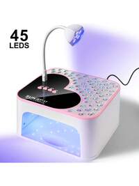 Lámpara de uñas UV profesional, secador de uñas con diseño de corazón con piedras preciosas de colores, lámpara de gel de gran capacidad con botones de ajuste de temporizador con forma de corazón linda, lámpara de curado de secado rápido con pantalla LCD y sensor automático, para uñas de gel, regalo de Navidad, para mujeres y niñas, para salón y hogar, morado, rosa, blanco #2 Más vendidos