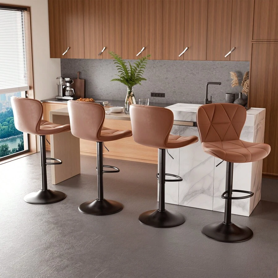 Nalupatio Nalupatio Modern Bar Stool 4 Piece Set, Bar Stool, Faux Leather Upholstered Swivel Bar Stool, Adjustable Counter Height Bar Chair With Backrest For Kitchen Island