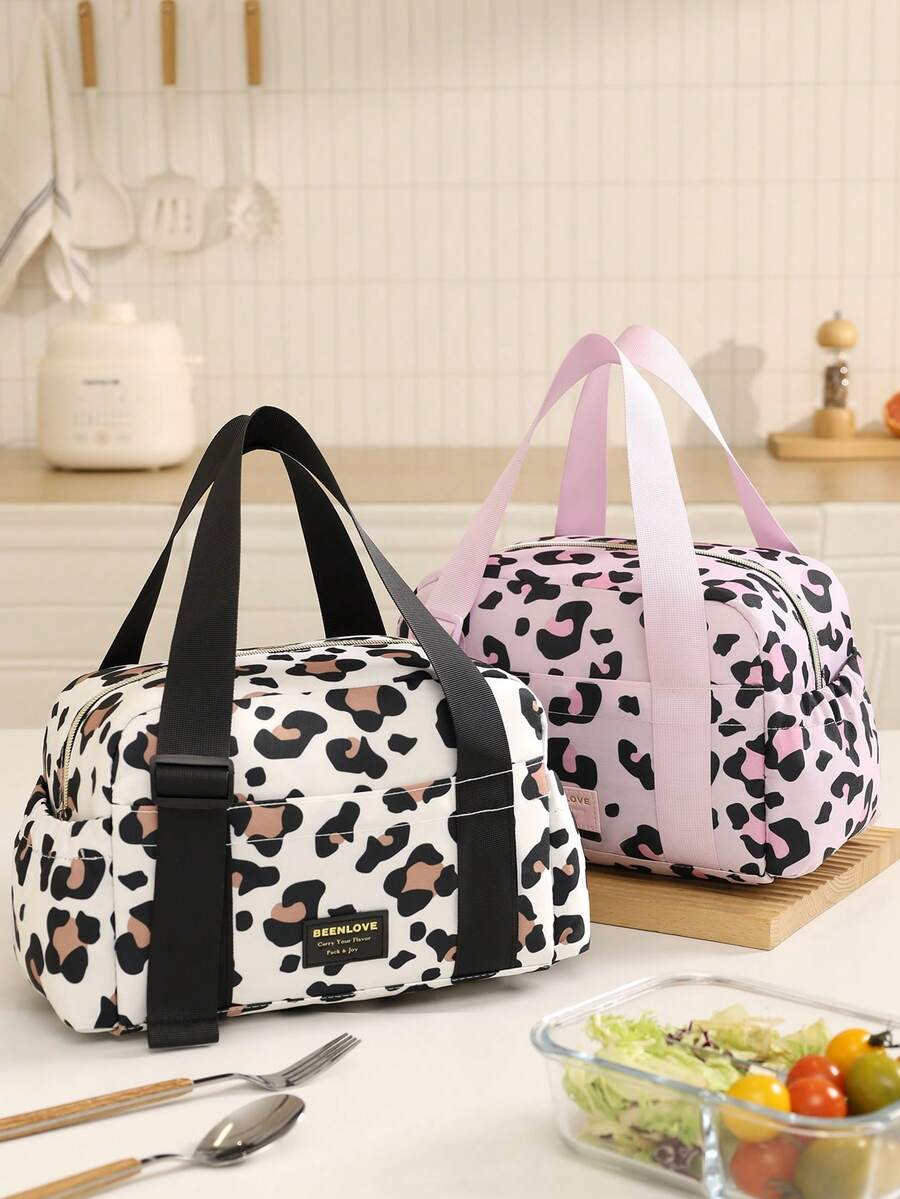 1pc Insulated Lunch Bag For Women Men, Reusable Lunch Box For Office Picnic Hiking Beach,Leakproof Cooler Tote Bag Organizer,Large Capacity Thermal Cooler Tote Bag With Handle, Waterproof Lunch Box Bag, Portable Lunch Organizer Pink Leopard Lunch Bag