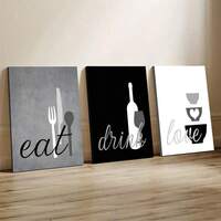 3-Piece Wooden Frame Kitchen Wall Art, Themed Eating, Drinking, And Having Fun , Featuring Modern Canvas Poster Design In Monochrome Gray, Black And White. Creative Waterproof Material, Ideal As A Gift. Suitable For Decoration In Bedrooms, Living Rooms, Homes And Dormitories. Perfect Choice For Room Decor, Also Ideal For Western-Style Decor, Home Decoration, Modern-Style Room Decor, Canvas Wall Art Or Kitchen Decoration. #3 Bestseller