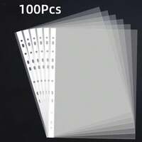 100 Heavy Duty A4 Folders With 11 Holes - Transparent Plastic File Organizer, Compatible With 3-Ring Binders, PP And PVC Filled Structure, Suitable For Back-To-School Season, Office, School, And Home - Transparent Pages Display Content, Desktop File Organizer, Office Supplies, Functional Design, Durable PP Material#1 Bestseller