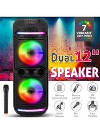 This Speaker Features Powerful Bass, Is Ideal For Gyms, Dance Studios, Conference Rooms, And Is A High-Power Wireless Speaker Suitable For Outdoor Use. It Has A Knob-Style Design, Karaoke Function, And RGB Lighting Effects. Perfect For Home, Outdoor, And Party Use, It Includes A Portable Wireless Microphone For Karaoke, And Supports USB, AUX, Type-C, TF Card, MP3, And USB Flash Drives. It's A Modern Audio Device.