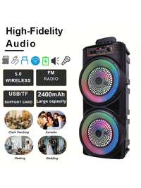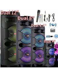 Portable Wireless Dual 8-Inch Speakers With Running Lights, Aperture With Microphone, High-Power Speaker, Outdoor Square Dance Karaoke Subwoofer, Outdoor Wireless Speaker, RGB Party Lighting, USB SD Card Reader, Remote Control - Perfect For Parties, DJs, Weddings, Conferences, Home Outdoor Sports