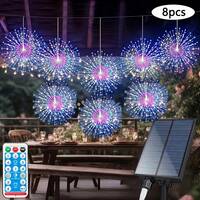 8 piezas - Luces solares de fuegos artificiales LED de 580 para exteriores, luces de bola de estallido de estrella multicolor brillante, luces de hadas impermeables IP44, 8 modos de cadenas de luces de alambre de cobre, adecuadas para patio, sombrilla, aleros, jardín, árbol, carpa, decoración de Navidad y Halloween