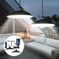 Lámpara colgante solar, foco solar exterior de gran potencia, resistente al agua IP43, recargable para interiores y exteriores, con 2 bombillas LED solares, mando a distancia, montaje en pared, sensor de luz, parasol de plástico, ideal para iluminación de garajes, diseño elegante, apta para paredes, puertas, cobertizos, graneros, garajes, jardines y patios.#7 Más vendidos