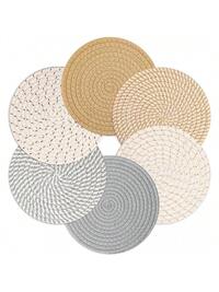 6pcs Multifunctional Round Heat Resistant Placemats, Non-Slip Pot Holders And Table Mats, Suitable For Restaurant Accessories And Picnic Blankets – Ideal For Home, Outdoor Gatherings, And Picnics; Lightweight And Portable Placemats For Easy Use!Microwave Oven Pad, Kitchen Thermal Pad, Hot Dish Thermal Insulation Pad, Placemat, Suitable For Hot Pot Pots, Bowls, Kitchen Counters, Heat Resistant