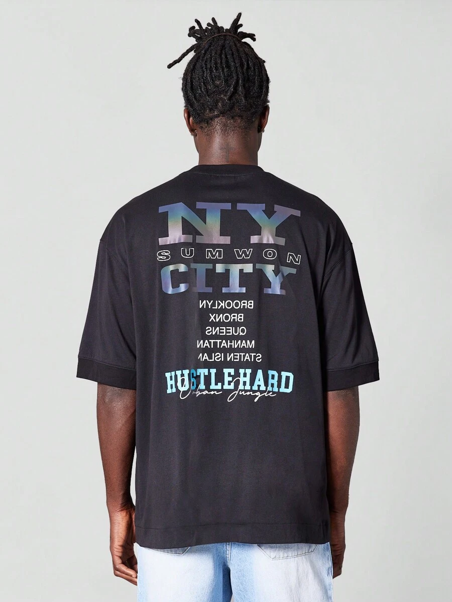 SUMWON Camiseta De Corte Holgado Con Impresión Reflectante En La Parte Delantera Y Trasera