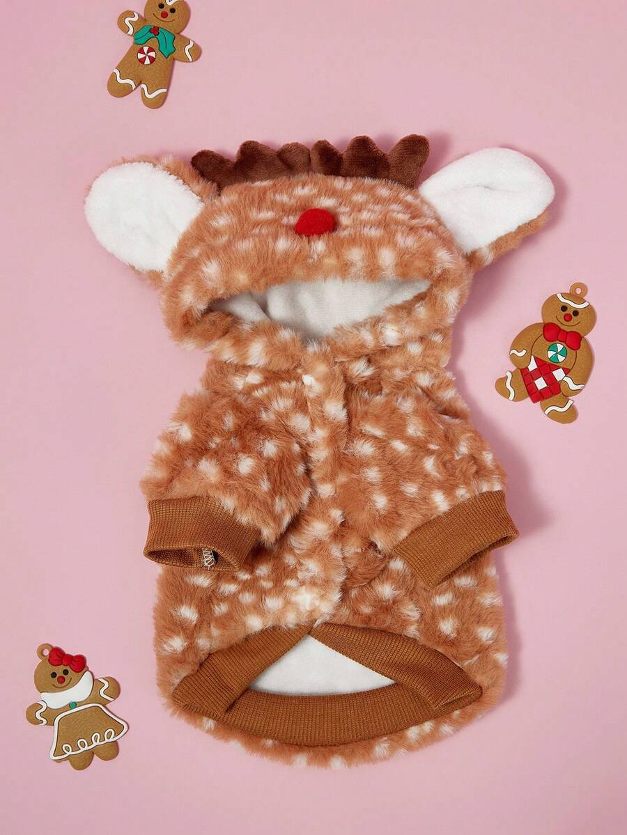 PETSIN Wholesale Cute Christmas Elk Antler Rabbit Fur Hoodies With Dot Snowflake Print, Small Dog And Cat Outfit, Fashionable Hoodies With Hood For Dogs