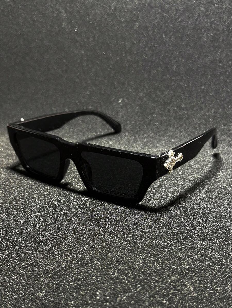 POLASUP 1pc Men/Women Rhinestone Cross Decor Polycarbonate Anti-Explosion Lens Fashion Glasses, Sports Casual Street Retro Flat Top Copper Hinge Non-Plastic Hinge UV Protection Sunglasses (Comes With Glasses Strap And Cleaning Cloth)