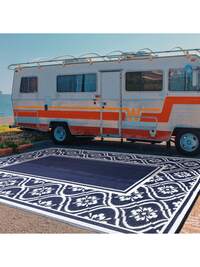 Outdoor Rug Waterproof All-Weather Patio Carpet For Garden, Deck, Poolside & Camping - Heavy Duty 5x8ft UV Resistant Non-Slip Backing Reversible Design Mold/Mildew Proof Easy Clean Indoor/Outdoor Use Machine Washable Fade Resistant Thick Pile Comfortable For Bare Feet Premium Polypropylene Material With Anti-Curl Technology, Perfect For Backyard, Balcony, Porch, RV, Beach House - Navy Blue Geometric Pattern Contemporary Outdoor Floor Mat With Taped Edges, Rug Pad Included (Size Options: 5x8ft, 6x9ft,8x10ft,9x12ft#2 Bestseller