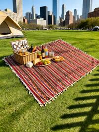 1pc Spring Boho Style Tassel Camping Blanket – Comfortable Fabric, Charming Floral Pattern With Tassel Trim. Suitable For Beach Trips, Camping Adventures, Hiking Expeditions, Travel Journeys, Family Concerts, Park Picnics, Backyard Gatherings, Outdoor Movie Nights, Indoor Dining Table Decoration, Party Table Setting, Patio Leisure, Garden Parties, Holiday Dinners & Casual Leisure Activities